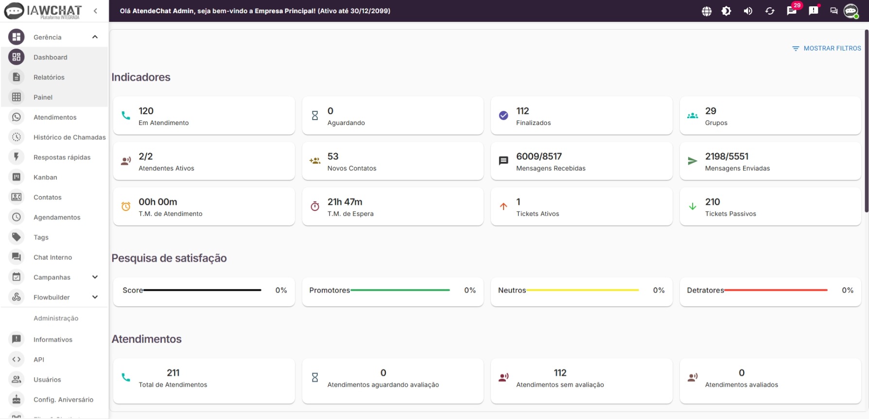 Audite o tempo de resposta, quantidade de atendimentos por usuário e avaliações dos seus clientes.